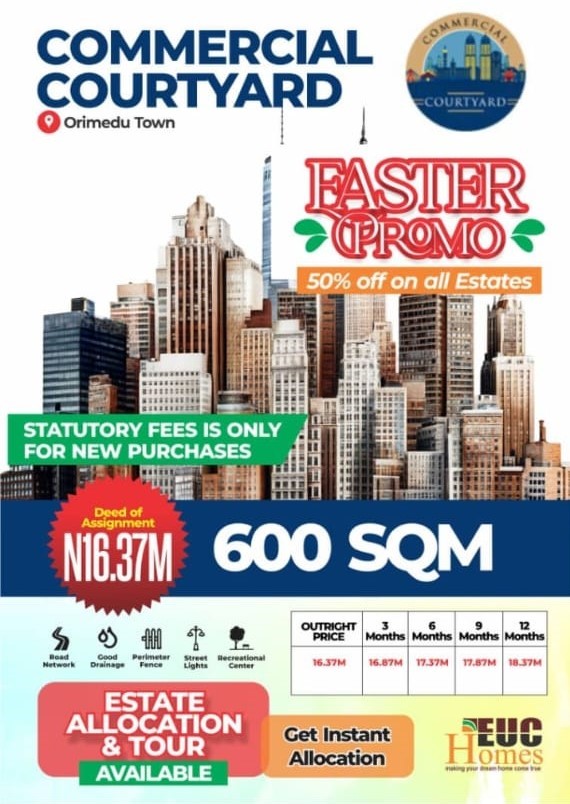 EUC Homes brings you an extraordinary offer that redefines what is possible in real estate: a massive 50% discount on select units at the Commercial Courtyard in Orumedu Town.